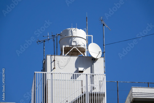 マンション・共同住宅の屋上 高架水槽 塔屋 アンテナ - Buy this stock photo and explore similar images at Adobe Stock | Adobe Stock